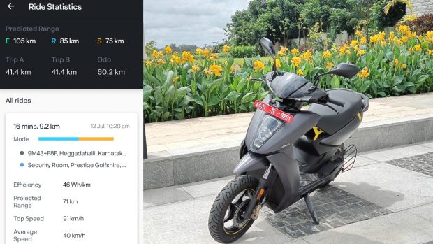 Also, it is worth mentioning that while the company claims a top speed of 80 kmph for the Ather 450X, we were able to sprint up to 91 kmph as per Ather’s ride statistics. With a kerb weight of 111.6 kg, it is pretty lightweight and can sprint from 0 to 40 kmph in just 3.3 seconds (claimed). The company has tuned its suspension as per the new tyres but the ride quality remains the same as before and it stays planted even at speeds of up to 80 kmph.