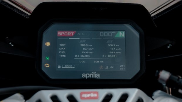 Based on an aluminium twin-spar frame like its older siblings, the Aprilia draws a lot of design inspiration from them with its twin headlight and DRL setup, short rear section, an under-belly exhaust, and colour combinations. The motorcycle looks and feels big, yet is compact and proportionate.