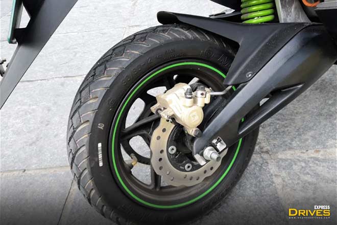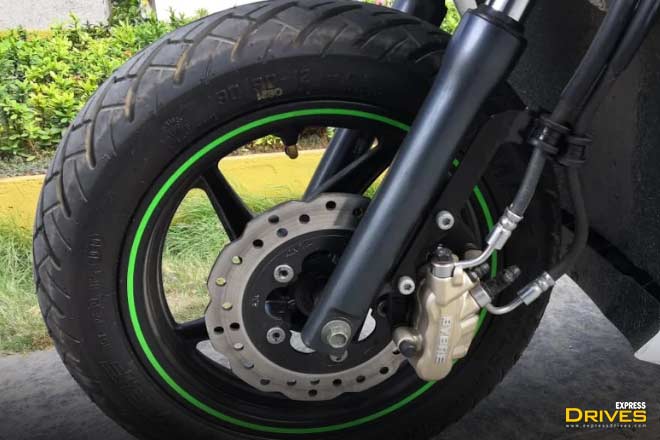 The 450 sticks to its line even when being ridden at its full pace. Ather 450 gets disc brakes at both ends and these are coupled to a Combined Braking System for additional safety. The brakes offer a fantastic bite and feedback and in fact, the stopping power is one of the best that I have experienced on a scooter till date. You can easily trust the set up with all your heart during panic braking. However, for this reason, we felt that instead of CBS, the scooter should have been offered with an ABS (Anti-Locked Braking System) for better safety.