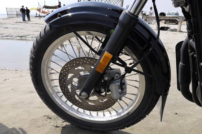 The Imperiale 400 gets a 300mm disc brake up front along with a 240mm disc brake at the rear with a standard dual-channel ABS. Both, the front and the rear have decent feedback but lack that instant bite and hence, you need to be a bit cautious while riding at high speeds on the highways.
