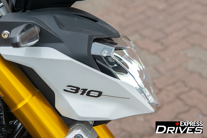 The new BMW G310R boasts a slightly different front as compared to the older one. Now you get a youthful-looking headlight design complete with LED lights as well as a DRL. Both, the clutch as well as brake, levers are now adjustable for four positions. A new paint scheme also makes its way whereas other lights like the blinkers and tail lamps too are LED. The exhaust pretty much looks like the one on the TVS Apache RR310. While the bike might look smaller in the images, it actually feels big in the flesh.