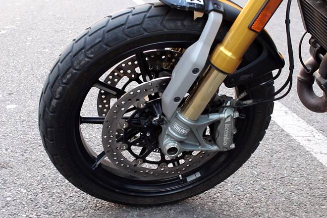 Braking on the Ducati Scrambler 1100 is done with the help of twin 320mm disc brakes up front along with a single 240mm disc brake at the rear. The set up is paired with an ABS and even a cornering ABS is on offer for additional safety. The braking performance is just spot on as the brakes provide exceptional bite and instant feedback at the lever and you can easily rely on these during panic situations.