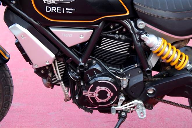 Despite weighing 206 kg, the Ducati Scrambler 1100 feels surprisingly agile. Show it some corners and you will realise that the Ducati Scrambler 1100 remains ready for quick directional changes. Further complimenting the handling is the excellent grip from the Pirelli MT 60 RS tyres and these are indeed confidence inspiring especially around the corners. These are knobby units and hence, taking the bike off-road won’t be a problem either.