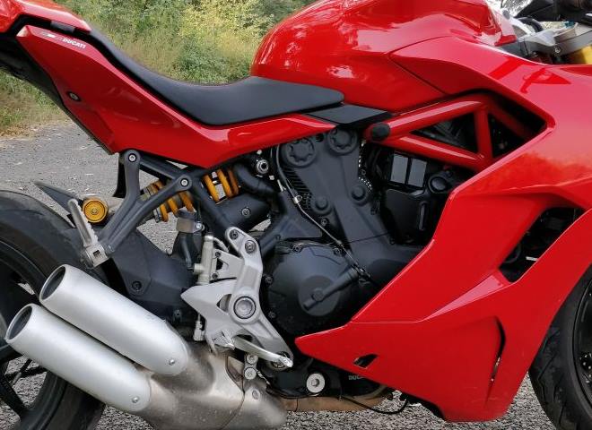 The Ducati SuperSport S and the lower-spec SuperSport are powered by a 937 cc Testastretta motor producing 110 hp of power and about 94 Nm of torque. While on a sportbike one is left struggling for power in the lower revs, the SuperSport engine offers 80 % of total torque under 3,000 rpm. This means pulling away in lower gears is a breeze and as a result of this riding in traffic is no longer a torture like it is on most sportbikes. The Super Sport S has an additional kit in the form of a quick shifter, which lets you upshift/ downshift without using the clutch.