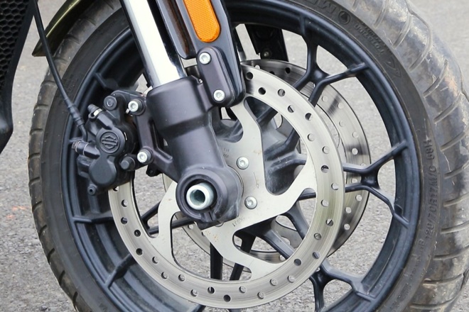 Braking has been greatly improved with the dual discs and dual piston callipers up front. The bite from the brakes is better than the Street 750, but not the scary kind of better. It too, like the previous Street, comes with ABS.