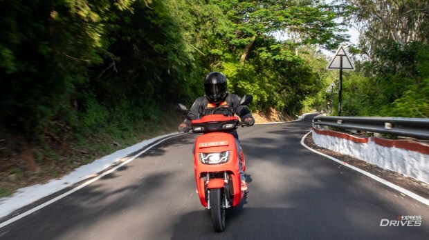 The startup sequence is simple — key on, hold brake, turn on the kill switch, and start. On the move, the scooter feels brisk – not as sporty as the Ather 450 series – and the suspension feels a bit stiff. As soon as you hit some potholes, the suspension setup makes sense, and Hero has always managed a good suspension setup on all its products.