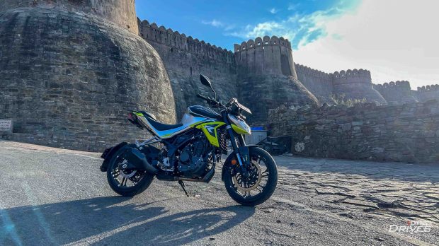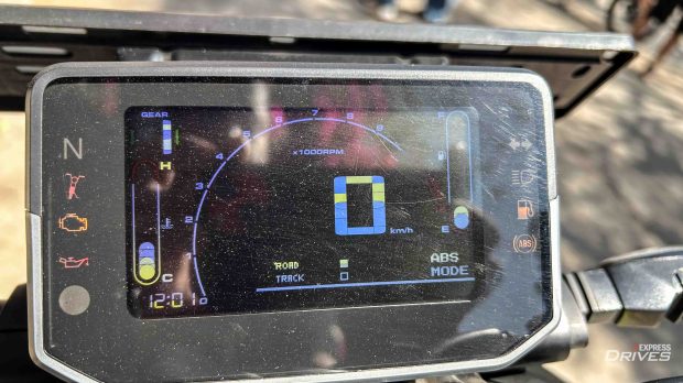 The motorcycle features dual-channel ABS with two modes — Road and Track. The former keeps the ABS on for both wheels while the latter turns off ABS at the rear. The issue — it resets every time the engine restarts. Finally, the brakes — the front lacks bite and changing to a set of sintered pads will do the magic, however, we will speak more about this when we ride for longer.