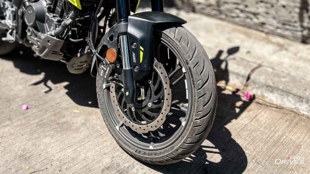 When you show it some twisties, the motorcycle is happy to lean in and feels surprisingly agile. Adding to the quality of the ride are the suspension — USD forks at the front and a monoshock at the rear. The setup is right on — it feels stiff enough to offer sporty handling and is not too plush to make the ride wavy. It soaks in the bumps and bad roads well, and the setup makes the motorcycle a fun-to-ride machine.