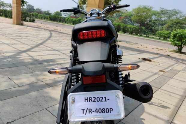 Also, these aren’t ‘always ON’ units at the front like the latter. The tail lamp too is a different all-LED rectangular unit and is fitted just under the seat while on the H’ness, it is fitted on the rear fender. Fenders, talking of which, these are shorter units on the RS to give the bike a more energetic appeal and make it look like more of a Scrambler. The pillion grab rails on the RS are mounted on the sides compared to a conventional-looking unit on H’ness that is fitted at the rear.