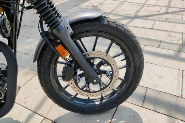 Now, here comes one of the biggest differences. Both, the H’ness and the RS have been fitted with 19-inch front wheel with 100-section tyres but at the rear, you get a wider 150-section tyre with a smaller 17-inch rim on the RS compared to 130-section rubber with 18-inch wheel on the H’ness. The tread pattern of the tyres on the RS is also off-road inspired and Honda says that this variation in the tyre and wheel size is done offer more of a Scrambler-like appearance and experience.