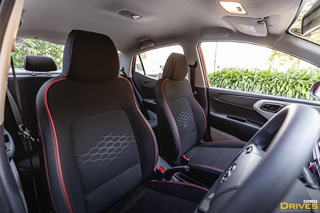 Now coming to the engine specs of this engine, this one develops 100hp of power along with 170Nm of torque which is enough to move this car at a brisk pace. When you cross 1,700 rpm, the turbo comes into its element and that is when you get a strong dollop of acceleration. It might sound surprising but this is a petrol Hyundai that is fun to drive. The other good thing about this engine is the NVH levels and since this is a petrol engine, NVH is not much of a problem and being a three-cylinder, this is good on the NVH scale. However, when it is on idle, you can hear some noise and feel some vibrations but once you get moving in and once the turbo is into play, that is when things smooth out. The gearbox is a five-speed manual that is matched nicely to the engine. The ratios are good and it is a gearbox that complements the engine performance and you can actually push this car and have a lot of fun.