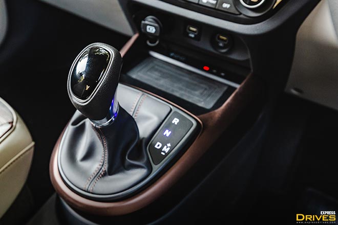 The instrument cluster comes with an analogue rev counter along with a digital display that gives you a lot of information right from the speedometer to trip meters and a lot more. The segment-first feature in this car is the wireless charging pad that supports fast charging. You also get 2 USB charging points, one of which is again in compliance with fast charging. Beyond that, it is a premium-looking interior, the materials look good, the build quality is nice and it is a pleasant place to be in.