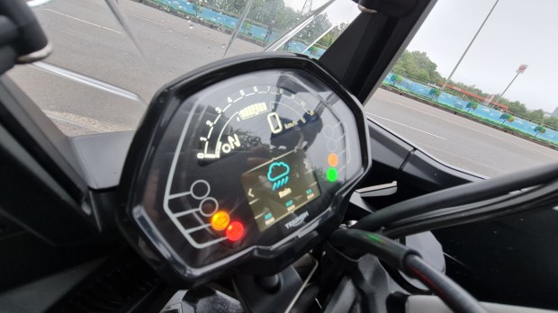 The bike has two riding modes – rain and road – and I used the former quite a bit, as the weekend I had the bike, was one of the wettest weekends New Delhi has seen. I did take it out to the expressway for a short ride and it delivered as expected. The adjustable windscreen was easy to raise with one hand on the go, although it does feel a bit flimsy.