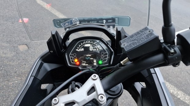 Start it and the buzzy motor is a treat to listen to. The underbelly exhaust may be invisible but it makes itself felt with the soundtrack. This motor has been derived from the one used on the Triumph Street Triple and has a kind of primal note that appeals to an inner child. The Kawasaki Versys (parallel twin) and Suzuki V-Strom are really quiet in comparison. You’ll find yourself unnecessarily revving past 7,000 rpm before shifting up just for auditory pleasure.