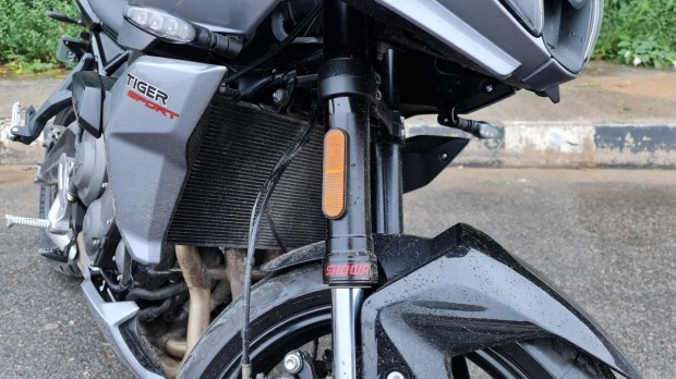 The Triumph Tiger Sport 660 has all the essential features one would expect from a middle-weight adventure motorcycle. The all-digital instrument console is easy to read with a digital speedometer and tachometer. It also has a gear indicator, fuel guage and multi-trip meters built in. One can also connect to a bluetooth navigation system through it for turn-by-turn navigation (which is an optional extra). It gets self-cancelling indicators too. The rear shock absorber has an adjustable pre-load setting, but the front 41 mm shocks are non-adjustable.