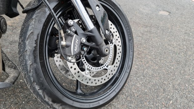 The bike feels incredibly stable while riding. The meaty tyres (Michelin Road 5) add to the confidence on turns. Being light, it’s easy to flick from side to side and I found myself filtering through traffic with ease. The brakes – dual 310 mm front discs and single 255 mm rear disc, equipped with dual channel ABS – are pretty strong. One needs to be gentle on the brakes, as they tend to bite quite hard. It wasn’t a bother for me, as I enjoy downshifting, with a bit of throttle blipping to slow down, rather than depending only on the brakes. In terms of vibrations, there are a few that creep in at high rpm on the pegs and the handle, but it’s not that bothersome.