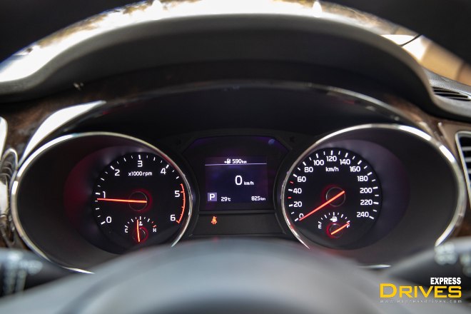 With its massive dimensions and weight, one wouldn’t expect the Kia Carnival to be able to move around quickly. Surprisingly though, it does! That’s courtesy the 2.2-litre turbocharged diesel engine with Variable geometry. Power output is healthy at 197 hp along with a torque of 440 Nm. The engine pulls cleanly from as low as 1,750 rpm and one can ride the torque wave till about 3,000 rpm after which things start to taper off. There’s only one transmission on offer, an eight-speed automatic unit, which is mated well to the engine. Shifts aren’t very quick but they aren’t sluggish either and performs in sync with the positioning of a luxury MPV.