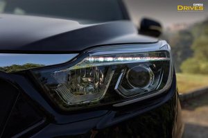 Now for those who are not aware of the Ssangyong Rexton on sale in the international markets, the Mahindra Alturas G4 is a Land Rover Discovery sized off-roaders with All-wheel Drive option and proper locking differentials. It has a body-on-frame construction and the big difference in the design of the SUV is its Mahindra design. The front grille of the Mahindra Alturas G4 is very much in-line with Mahindra’s other SUV and makes the Alturas look bold. The front bumper is muscular and there is a nice chrome lining on it complimenting a chrome border on top of the grille. The headlamp cluster with DRLs gets projector headlamps and overall the SUV does look nice given its proportions. The new Mahindra Alturas G4 SUV dimensions stand at 4850 mm in length, 1960 mm wide and stands tall at a height of 1825 mm. It has a ground clearance of 180 mm, which should prove to be enough to encounter most bad surfaces.