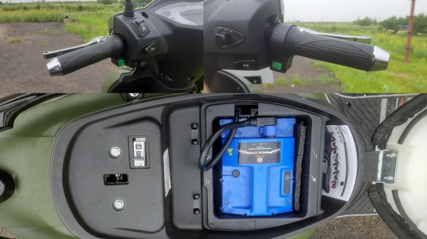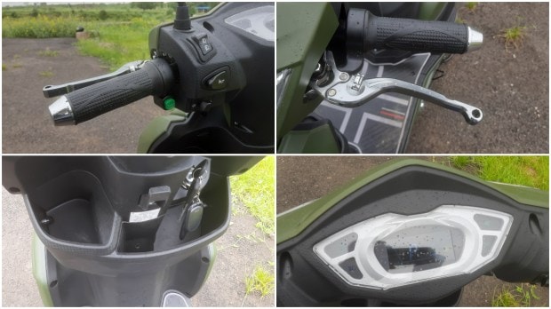 Performance feels fairly linear like a normal petrol-powered scooter although there is nothing exciting on offer. Even a 110cc petrol scooter was able to conveniently overpower us on the highway. As for braking, the disc brake setup at both ends does a fairly decent job at bringing the scooter to a halt in a progressive manner despite the levers lacking the bite. However, you’ll surely miss the absence of ABS, even more thanks to the unsticky nature of the tyres.