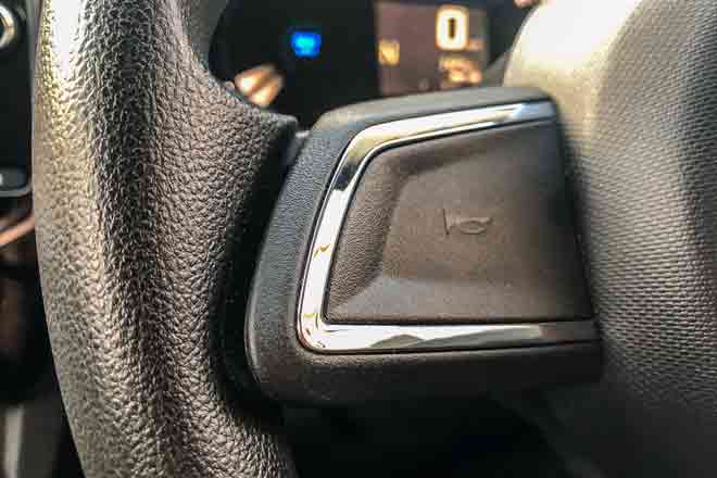 The steering is fairly direct, but lacks feedback and does not centre itself back. Also, the entire centre of the steering wheel is the horn. Due to the design of the steering wheel, the edges at 3-o-clock and 9-o-clock overlap the grip. This results in unintentional honking and I have not been able to get used to and it can become annoying.
