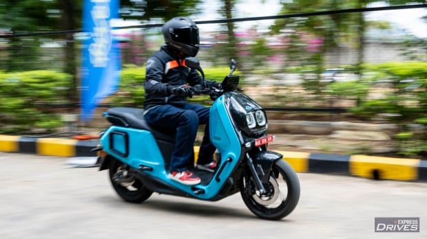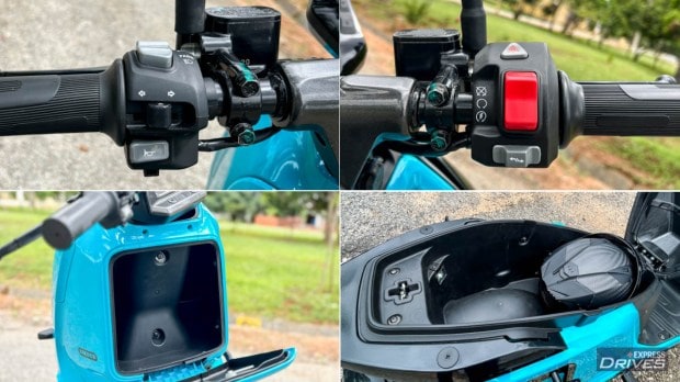 Quirky is the word to describe the Indie’s design, as the scooter is large compared to the other EVs in the market. It has a massive front end with twin headlights, 14-inch wheels, a large and wide floorboard, and a massive rear section that houses the unique rectangular-ish tail lamp. The Indie weighs 140kg and comes with a host of accessories such as panniers, a built-in crash guard, a mobile phone holder, and more.