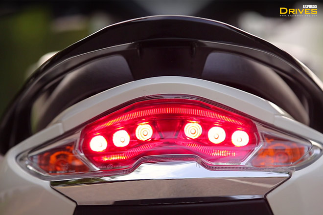 The clear lens turning winkers have been fitted neatly into the front apron as well and these look stylish. Also, I like the way how the aluminium footpegs are designed and how these seem to merge into the body when you close them. The rear end of the Suzuki Burgman Street gets a large LED tail lamp that looks bold and equally appealing like rest of the elements. There is a broad grab rail that not only offers a bit of character but is convenient too.