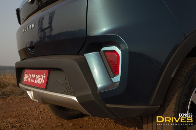 From the side, the Nexon EV retains the swelled wheel arches sitting underneath which are 16-inch diamond-cut alloy wheels. The A, B and C pillar have been blacked-out and this combined with the contrasting roof, gives the Nexon EV a very funky look. At the back, the scale of the design updates has been dialled down a notch. The only new bits that you see here are the redesigned tail-lamps and the new bumper.