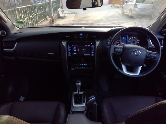 The new Fortuner features a completely new design compared to its predecessor and unlike the older Fortuner, which was boxy and rugged, the new one’s more sleek and upmarket. The butch appeal of the older model is gone but the new one looks suave and thoroughly modern. The sleek headlamps with LED DRLs and triple slat grille lend the SUV with an expensive-looking front. The massive ground clearance too helps it dynamic appeal. Compared to the diesel version, there isn’t any notable difference except for the badge at the rear door. Overall, a good looking SUV that has given up on its well-known visual characteristics and adopted more urban traits instead.