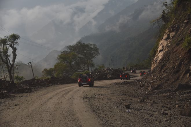 When we set off from Pakke Kessang, Arunachal’s Director of Tourism, Abu Tayeng joined us in his personal Mahindra Thar and was leading the convoy to Shergaon. Needless to say, the convoy was on a full-on power trip, roads were no longer blocked, and having him give us anecdotes about the land and the locals over the radio was quite insightful.