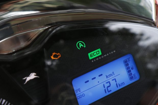 The instrument cluster, like other TVS products, is a highly informative unit. Apart from the usual stuff, the digital-analog cluster shows instantaneous and average fuel efficiency, gets three tripmeters (Trip A, B and F), clock and indicators for helmet reminder, side stand, engine malfunction, Eco/Power and low fuel. Moreover, apart from the digital fuel gauge, the cockpit shows distance to empty range as well.