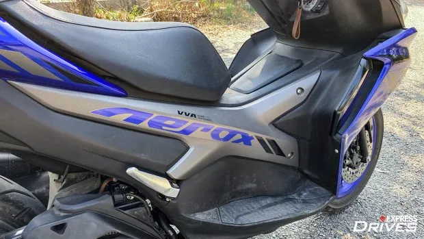 The seat cushion is decently wide and long, providing enough space for the rider and the pillion as well. Being 6-feet tall, I found the riding position to be very neutral and relaxed. The handlebars were well within reach and I did not have to lean too much. The 790mm seat height was not an issue either. Shorter riders might struggle to plant both feet on the ground but it should not be too much of an inconvenience. The scooter weighs about 126kg and I did not have any trouble manoeuvring it. Another benefit of the fuel tank being in the front is that it frees up room under the seat. The Aerox 155 boasts 24.5 litres of storage space and it is enough to engulf most full-faced helmets without an issue.