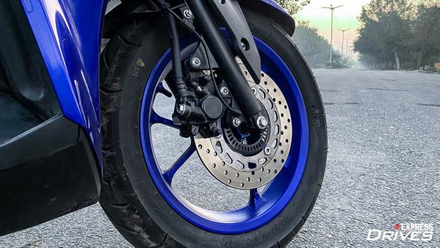 One sore spot for the scooter is the stiff rear suspension. At the front, you have telescopic forks which work flawlessly. They soak in the undulations on the road without feeling too squishy. At the rear, you will see a set of springs, which is unlike most other scooters in India. However, these have been set up a little too stiff. Anytime you go over a speed breaker or a pothole, prepare to be rattled. I understand that this is a performance scooter and a stiff suspension is to be expected but I do feel that Yamaha could have made it a touch more comfortable and not lost on cornering capabilities substantially.