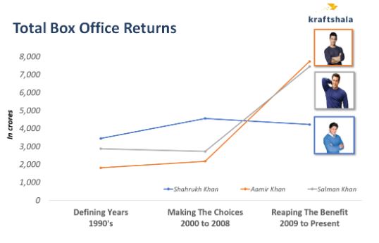 Post 2001, Aamir stayed true to his Essence, becoming highly selective with his choice of movies even as Shah Rukh reigned supreme between 2000-2008. That discipline and sacrifice, while being detrimental in short term revenues, was the key to his spectacular success of the following decade.