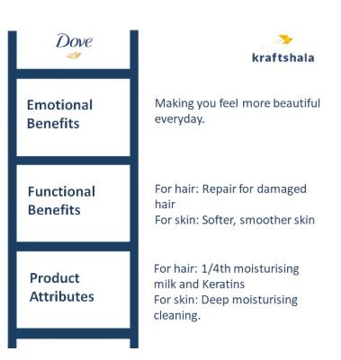 4. Ladder: The Ladder captures how your brand’s product attributes and RTB layer up to functional and then emotional benefit. In case of Dove, the Ladder looks like: