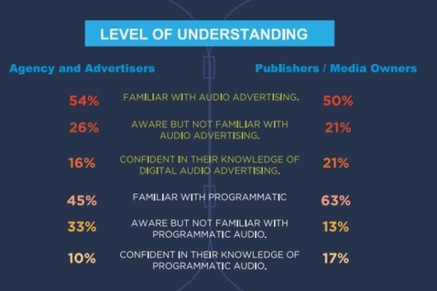 According to the report, despite the high adoption rate, only 89% of advertisers commit less than 10% of their total ad investment to programmatic audio advertising.This is primarily because of lack of understanding. Nearly 57% of advertisers said in the survey that they did not have a clear understanding of the impact of programmatic audio trading was a barrier to incorporating programmatic audio into their planning budgets. The report also highlights how 44% of advertisers consider campaign measurement as a key barrier to implementing programmatic audio. As a result, only 9% of advertisers and agencies were considering audio advertising to improve returns of their investment. Interestingly, only 54% of advertisers are familiar with audio advertising while only 10% are confident in the knowledge of programmatic audio advertising.