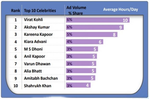 With ads coming back on TV, June 2020 witnessed 63% rise in ad volumes of celebrity endorsed ads as opposed to April 2020. During Apr-Jun’20, celebrity endorsed ads accounted for 21% share of ad volumes on TV. Out of this, film actresses led in endorsing brands with 43% share of ad volumes followed by film actors at 36%. Sports personalities accounted for 15% to celebrity endorsed ads. Meanwhile, TV actresses and actors accounted for 4% and 2% share, respectively. Interestingly, cricketer Virat Kohli topped the list of most visible celebrity on TV with an average visibility of 10 hrs./day across all channels, followed by Akshay Kumar and Kareena Kapoor.