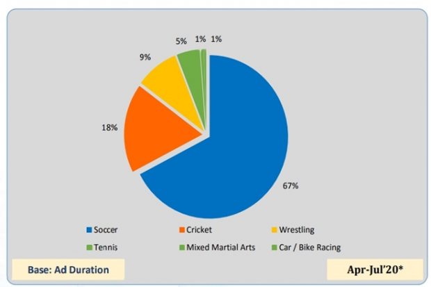 Weekday matches of Premier League garnered 53% more advertising compared to weekend matches. The second live soccer tournament during Covid attracted 16 advertisers from 24 categories promoting 47 brands.