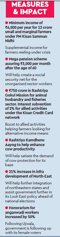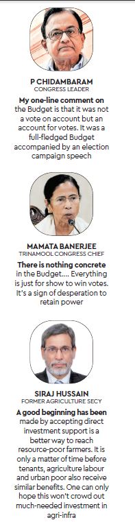 Farmers are unlikely to be too overjoyed with the Rs6,000 per annum that will flow into their bank accounts, a move clearly aimed at wooing them ahead of the elections. Most agrarian experts say the NDA government has not addressed the rural distress in time.