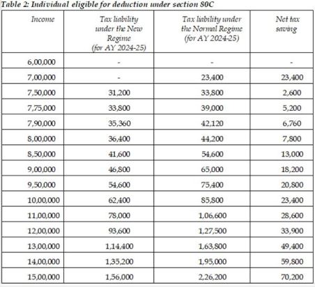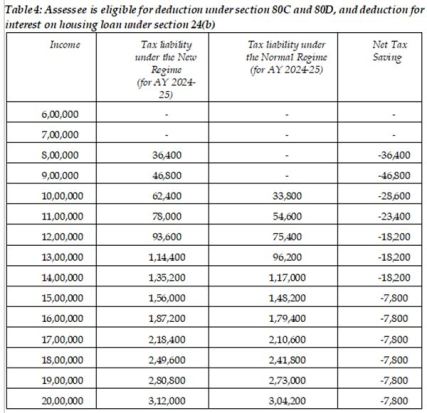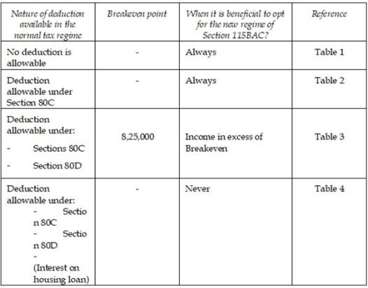 Despite these changes, the new tax regime may not be favorable for all taxpayers, especially those claiming popular deductions such as Section 80C, 80D and interest on housing loan. The tables below demonstrate the break-even points of taxable income for the new tax regime.