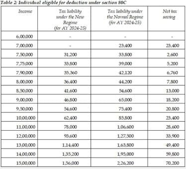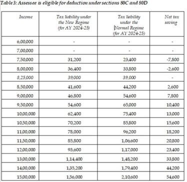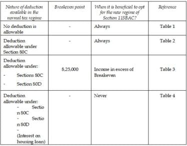 Despite these changes, the new tax regime may not be favorable for all taxpayers, especially those claiming popular deductions such as Section 80C, 80D and interest on housing loan. The tables below demonstrate the break-even points of taxable income for the new tax regime.