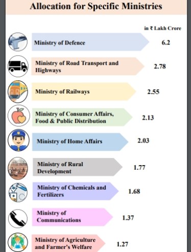 -Sectoral Allocations: Allocation of funds to key sectors like agriculture, infrastructure, health, education, etc.