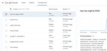The Budget garnered widespread attention, with major Google trends indicating heightened interest in topics such as income tax rebates, tax regime exemptions and Section 87A, among others. The term “new tax regime 2025” alone had a search volume of more than one million.