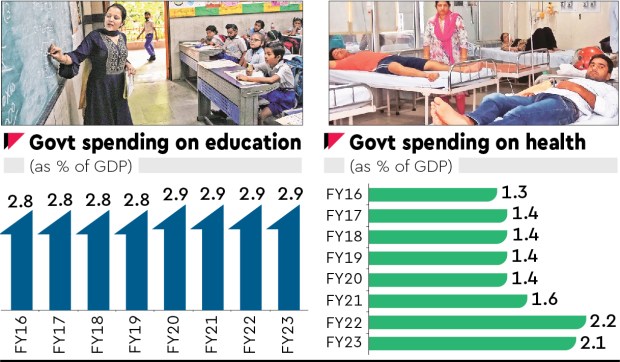 However, a meaningful push to productive capacity would have needed an expansion of the allocations to the education and health ministries—however, the needle on allocation as a percentage of the GDP has barely moved here from the RE FY23. The Centre’s budgeted education spend remains unchanged from last year, at 0.4% of the GDP. Total government (the Centre plus states) expenditure on education, at 2.9% of the GDP against the NEP goal of 6% public investment in education, shows that the Centre and the states need to increase their shares a fair bit.