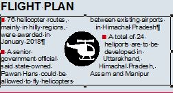 A senior government official said state-owned Pawan Hans could be allowed to fly helicopters between existing airports in Himachal Pradesh. “It is one of the proposals to kick-start helicopter operations under Udan. Himachal has three airports and it is easier to mark a helipad at existing facilities,” the official said.