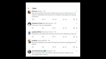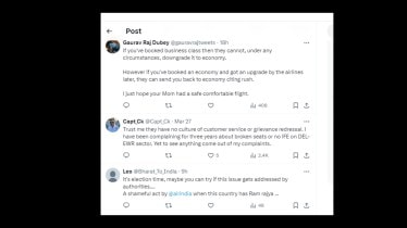 Updating the people on X, she later wrote that the airline has compensated 75% of the fare in addition to an upgrade voucher. “The ground staff at Delhi was extremely rude and behaved in a disgusting manner. My mother was listed in the flight manifest as a business class passenger, yet made to ride in economy,” she further said.
