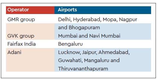 While the GMR group owns airports at Delhi and Hyderabad and won the development rights for Mopa and Bhogapuram facilities, the GVK group operates the Mumbai airport and is developing a greenfield airport in Navi Mumbai. Prem Watsa-owned Fairfax India Holding operates the Bengaluru airport.