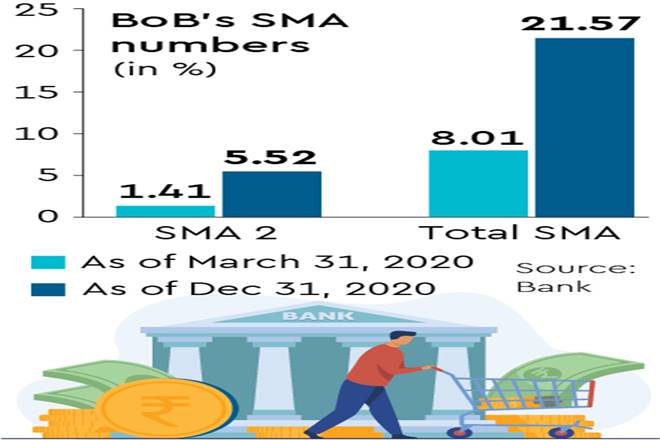 A placement document of Bank of Baroda (BoB), for an equity fundraise, shows the lender’s special mention accounts (SMA) ratio surged to 21.57% as on December 31, 2020, from 8% on March 31, 2020. This would suggest that lenders’ collection efficiencies do not adequately reflect the level of stress in the system.