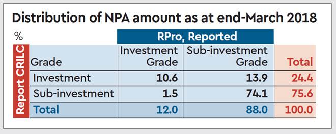 The trend could suggest either delayed action by CRAs or delayed reporting on the part of the lenders, the RBI said. “As the share was derived from CRILC alone, it can be argued that the deficiencies could be due to either the ways in which ratings are assigned by CRAs or the ways in which ratings are reported by banks or both,” the RBI report said, adding, “By mapping CRILC with Prowess, it was observed that about 14% of the sampled NPA exposure showed a sub-investment grade in Prowess, but carried an investment grade in CRILC, indicating concerns about delayed/lagged reporting of ratings by banks in CRILC.”