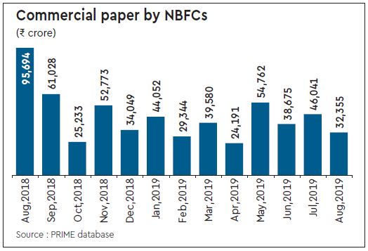 The data collected by Prime Database showed CP issuances dropped down almost 45% in January to August period of 2019 as compared to the last year. Last year in August, NBFCs rose Rs 95,694 crore by issuing CPs, while NBFCs issued just Rs 32,355 crore in August 2019.