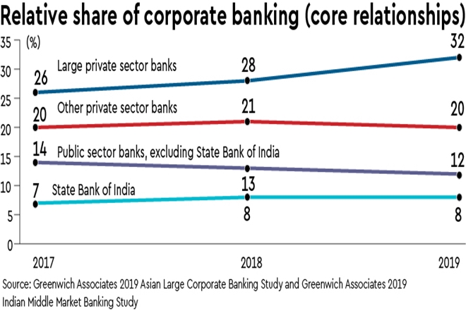 This, however, is not true for other state-owned banks. Excluding SBI, public-sector banks have been gradually losing share of core corporate banking relationships, declining from 14% in 2017 to 12% in 2019, the report said. “In terms of quality ratings from Indian companies, these banks lag private sector players by a wide margin and have been virtually left behind since 2017, as SBI steadily improved,” Crisil wrote.